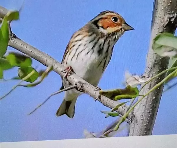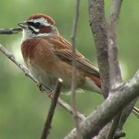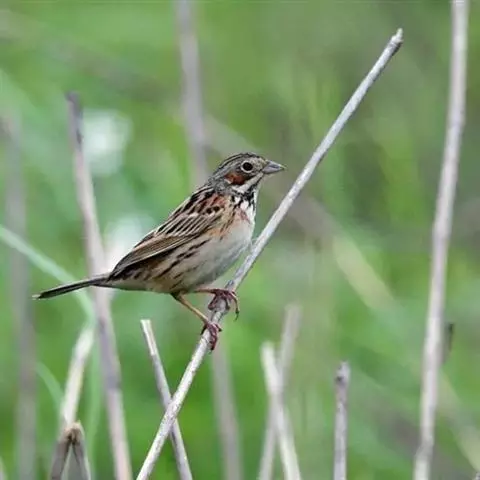 小鹀(学名:Emberiza pusilla):体重11-17克;体长115-150毫米。属小型鸣禽。喙为圆锥形,与雀科的鸟类相比较为细弱,上下喙边缘不紧密切合而微向内弯,因而切合线中略有缝隙;体羽似麻雀,外侧尾羽有较多的白色。雄鸟夏羽头部赤栗色。头侧线和耳羽后缘黑色,上体余部大致沙褐色,背部具暗褐色纵纹。下体偏白,胸及两胁具黑色纵纹。雌鸟及雄鸟冬羽羽色较淡,无黑色头侧线。虹膜褐色;上嘴近黑色,下嘴灰褐;脚肉褐色。