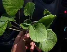 叶基生;叶片在下部者较小,呈心形,上部者较大,呈卵状心形,长6-8厘米,宽4-4.5厘米,先端渐尖,基部深心形,边缘密生浅圆齿,两面散生白色短毛,或下面无毛;叶柄长短不等,长6-11厘米,上部有极狭的翅,无毛;托叶干膜质,深褐色,披针形或宽披针形,长1-1.5厘米,边缘具长流苏状齿,无毛。