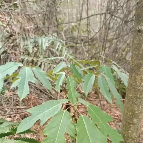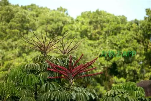 常绿乔木,高达12m。掌状复叶互生,小叶长椭圆形,全缘。花小,红色,总状花序。核果近球形,紫红色。