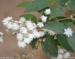 小花溲疏灌木,高约2米;老枝灰褐色或灰色,表皮片状脱落。叶纸质,卵形、椭圆状卵形或卵状披针形。…