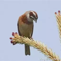 栗斑腹鹀:属小型鸣禽。体重19-25克,体长145-167毫米。头顶至背栗红色,眼先和颧纹黑褐色,…