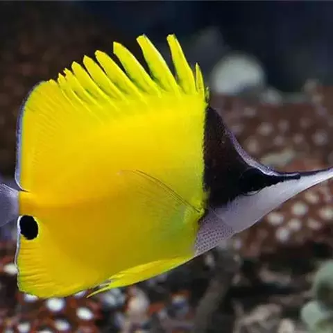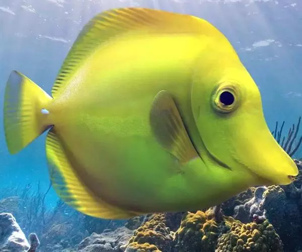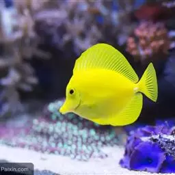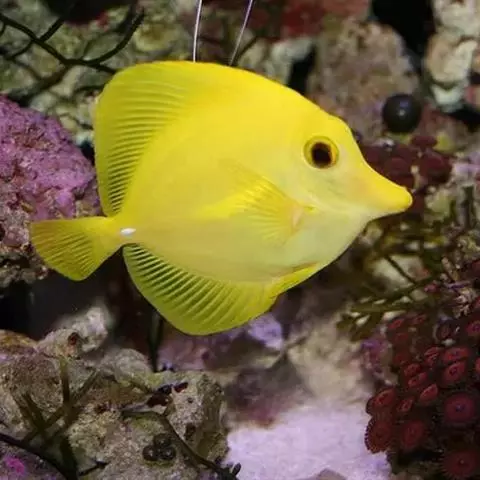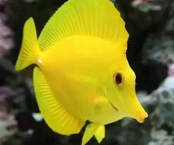黄高鳍刺尾鱼(学名:Zebrasoma flavescens)其体卵圆而侧扁,背鳍及臀鳍硬棘尖锐,前方软条较后方延长,呈伞形;尾鳍截平。尾棘在尾柄前部,稍可活动。幼鱼及成鱼体、头部及各鳍皆一致呈鲜黄色;胸鳍有狭暗缘;尾柄棘白色。
