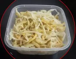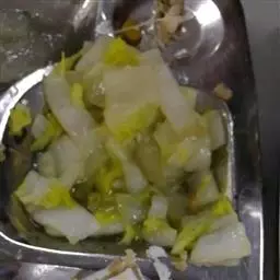 最常见又易烹制,成菜后味咸鲜,肉细嫩,色红亮,泡菜香气浓郁。牛蛙宰杀去头去皮去内脏洗净,斩成块,用盐、胡椒粉、干豆粉、料酒上浆码味。泡红辣椒去蒂去籽切成节,大葱洗净切成节,泡姜切成姜米。炒锅下油烧至七成热,将牛蛙下锅滑溜断生捞起。炒锅内下少许油烧热,下泡姜米、泡椒节炒出香味,下牛蛙,烹入料酒,放味精、大葱节簸转起锅装盘即可。