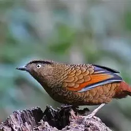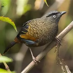 蓝翅噪鹛:噪鹛科、彩翼噪鹛属动物。中型鸟类,体长22-25厘米。上体棕橄榄褐色密被黑色鳞状斑,…