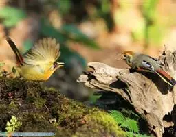 鸣叫:雌雄鸟鸣叫声有别。雄鸟鸣叫声宏亮、婉啭,似在宣告领域和警告入侵者;雌鸟为连续似铃声的“啼、啼、啼”,在回应雄鸟的鸣叫,以告知自己所在的位置。