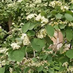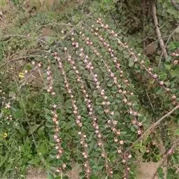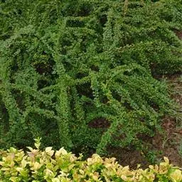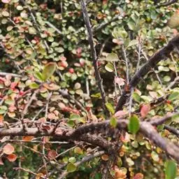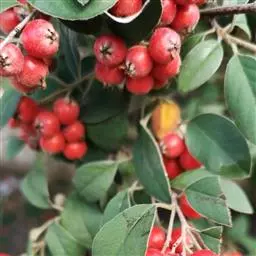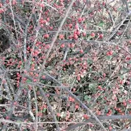 匍匐栒子与平枝栒子(C.horizontalisDcne.)的主要异点,在于后者茎水平展开,呈规则地二列分枝,叶片近圆形或宽椭圆形,稀倒卵形,边缘不呈波状,果实直径4-6毫米,有3小核。