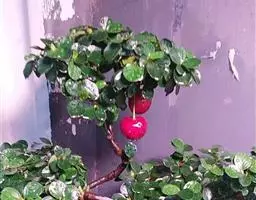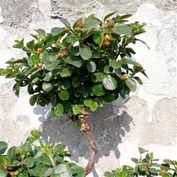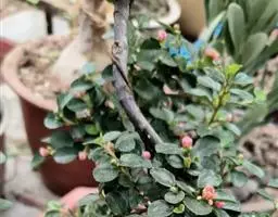 匍匐栒子因其植株生长呈匍匐状,枝叶茂盛、果实鲜艳,加以修剪造型也可作为良好的盆景材料。