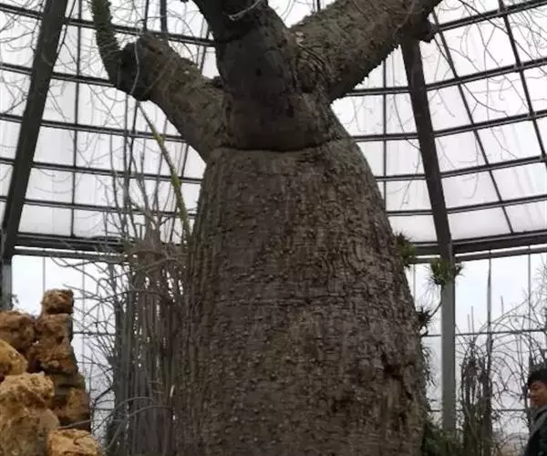瓶树,原产南美,别名也叫纺锤树Cavanillesia-arborela,属,外形与本植物相似,是不同植物在类似生态环境上相同适应造成的。纺锤树生长在南美洲的巴西高原上,远远望去很像一个个巨型的纺锤插在地里。纺锤树有30米高,两头尖细,中间膨大,最粗的地方直径可达5米,里面贮水约有2吨。雨季时,它吸收大量水分,贮存起来,到干季时来供应自己的消耗。