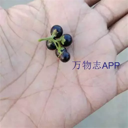 浆果球形,直径约8毫米,熟时黑色。种子多数,近卵形,直径约1.5-2毫米,两侧压扁。