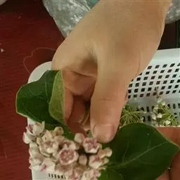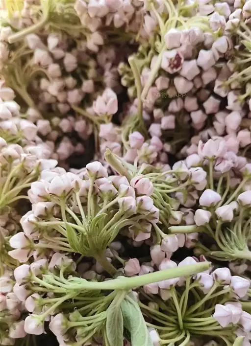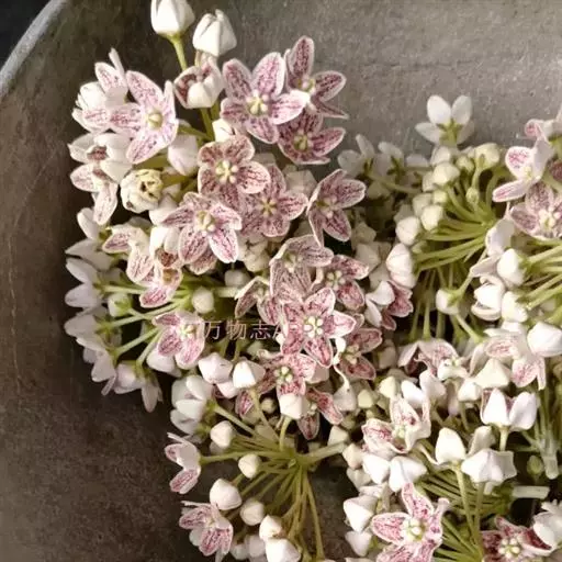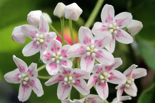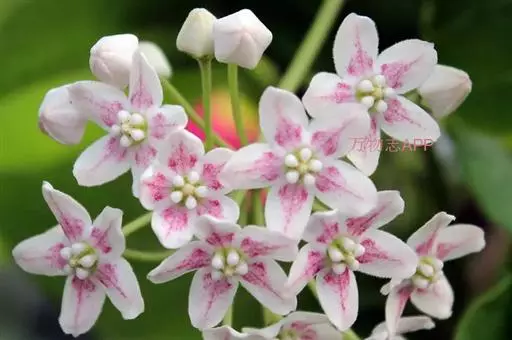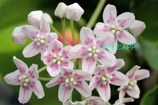 攀援灌木,全株具乳汁,除花冠和合蕊柱外,全株均被小茸毛,老茎被毛渐脱落。叶纸质,卵圆形,长1.3-3厘米,宽0.9-2.5厘米,基部心形,叶面被短柔毛,叶背被淡黄色的微茸毛,老渐脱落;侧脉每边约4条,在叶背凸起;叶柄长0.5-2.5厘米,顶端具3-4个丛生小腺体。伞形状聚伞花序腋生,长达5厘米,着花达15朵;花萼裂片卵圆形,花萼内面基部具5个小腺体;花冠白色,辐状,裂片卵圆形,长5毫米,宽3.5毫米,顶端钝而微凹,具脉纹,边缘被缘毛;副花冠裂片肉质,背面圆球状凸起,顶端内角延伸成尖角,与花药顶端的膜片近等高;花粉块长圆状,直立;子房被疏柔毛,花柱短圆柱状,柱头圆锥状,基部五角形,顶端短2裂。蓇葖披针形,长3.5-5厘米,直径5-7毫米,外果皮被微毛,老渐脱落,平滑无皱褶;种子卵圆形,长7毫米,宽4毫米,顶端具白色绢质种毛;种毛长2厘米。花期4-8月,果期10月。