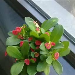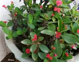 虎刺梅:别称铁海棠,是蔓生灌木植物。茎多分枝,长60-100厘米,直径5-10毫米,具纵棱,密生硬…