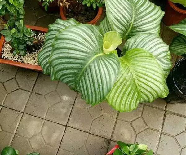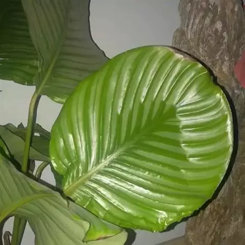 苹果竹芋(English Common Name),学名Calathea orbifolia,竹芋科消竹芋属植物,园艺 种,原种产美洲热带地区。