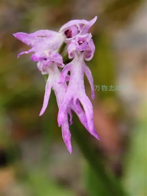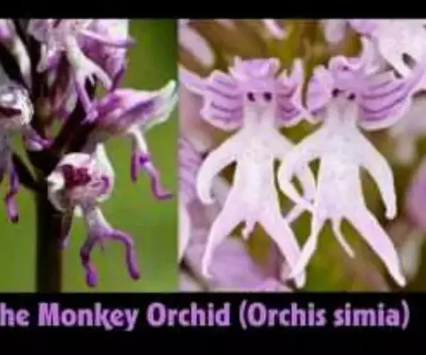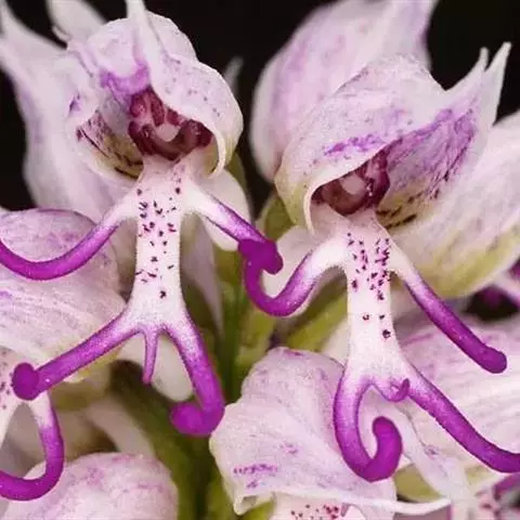 意大利红门兰,拉丁学名叫“Orchis italica”,整朵花的造型就像一个戴着草帽的裸体男人。因外观呈人形,英语里又称“Italian man orchid”,即“意大利男人兰”,或者“pyra-mid monkey orchid”,即“金字塔猴子兰”。此外,它还有一个源自古希腊文的名字为“睾丸兰”。