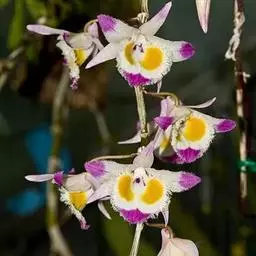 玫瑰石斛是兰科石斛属的多年生附生草本植物。茎斜下或下垂,青绿色,圆柱形,…