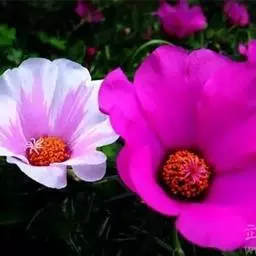 大花马齿苋:一年生草本,高10-30厘米。茎平卧或斜升,紫红色,多分枝,节上丛生毛。叶密集枝端,…