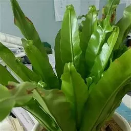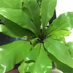 巢蕨 温度:鸟巢蕨不论是家庭盆栽,还是生产性栽培,冬季最好能保持15℃以上的棚室温度,使其能继续生长,条件不具备时,至少应保持不低于5℃的棚室温度,若温度过低易导致其叶缘变成棕色,甚至有可能因受寒害而造成植株死亡。