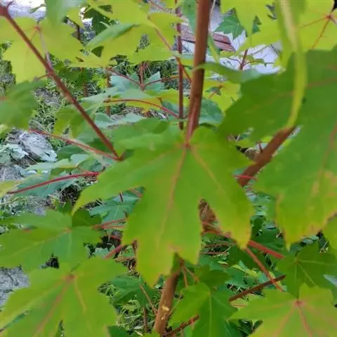 落叶乔木,通常高8-10米,稀达15米。树皮粗糙,灰褐色或深褐色,常裂成薄片脱落。小枝细瘦,当年生枝紫色或紫褐色,常有黄色短柔毛,多年生枝褐色或深褐色,无毛或近于无毛。冬芽短圆锥形;外部的2枚鳞片深紫色,有黄色短柔毛,内部的2枚苞片有褐色短柔毛。叶膜质或纸质,基部截形或近于心脏形,外貌近于圆形,长10-12厘米,宽7-9厘米,常5裂,稀7裂;裂片阔卵形稀三角卵形,先端锐尖,边缘有粗锯齿,裂片间的凹缺锐尖,深达叶片全长的2/5;上面深绿色,近于无毛,下面淡绿色或黄绿色,密被淡黄鱼丝越立在叶脉上更密;主脉5条,在上面显著,在下面凸起,侧脉11-13对,蓬蕊薇,显著,在下面显著,小叶脉在上面不显著,在下面显著,叶柄长5-8厘米,微有短柔毛或无毛。