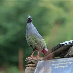 又名鸬雉 、黑鸡,中型鸟类,全长约48cm。雄鸟头顶和后颈及颈侧均紫黑。头上具有稍形直立的同色羽冠。背部蓝黑,下体大都黑褐,胸羽为披针状,除羽基外,呈白色而沾灰。脸部赤红。嘴黄褐,分布范围:喜马拉雅山脉、印度北部、缅甸北部及西部。在中国相当罕见,仅分布于海拔2100~3200米的亚热带森林。
