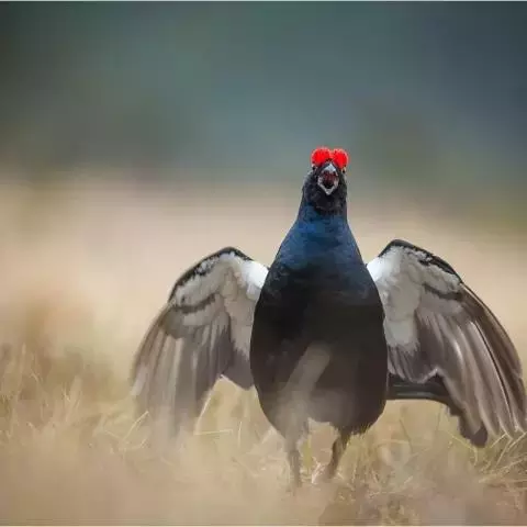 叫声:鸟群分散时的联络叫声为低沉的kurr-kurr-kurrchi-kurr声。雄鸟叫声为响亮的咯咯哨音伴以两翼拍打身体声。争斗叫声为恐吓的koor koor声紧接尖厉的waak, waak声。告警时为重复的koorchi koorchi koorchi叫声或为whoop-keet-keet的喉音。