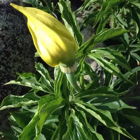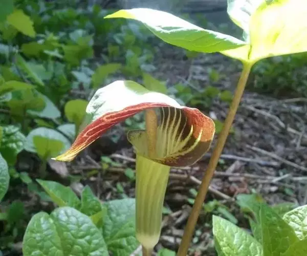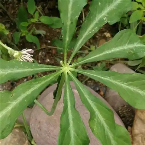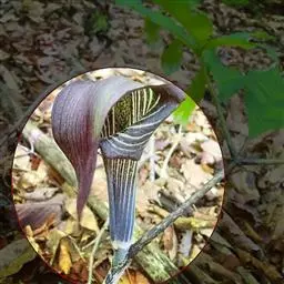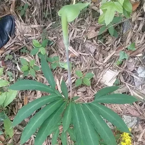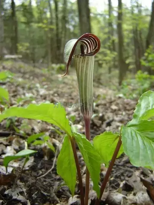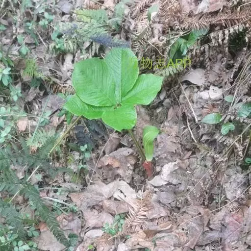 灯台莲:又名粗齿灯台莲。多年生草本。块茎扁球形,直径2-3cm。鳞叶2,内面的披针形,膜质;叶2,叶柄长20-30cm,下面1/2鞘筒状,鞘筒上缘几平截;叶片鸟足状5裂,裂片卵形、卵状长圆形或长圆形,边缘具不规则的粗锯齿至细的啮状锯齿,中裂片具长柄,侧裂片与中裂片近相等,具短柄或否;外侧裂片无柄,不等侧,内侧基部楔形,外侧圆形或耳状。花序柄通常短于叶柄或几等长。佛焰苞淡绿色至暗紫色,具淡紫色条纹,管部漏斗状,喉部边缘近截形,无耳;檐部卵状披针形,稍下弯;肉穗花序单性;雄花序圆柱形,花疏,雄花药2-3,药室外向纵裂;雌花序近圆锥形,花密,子房卵圆形,柱头小;各附属器具细柄,上部增粗成棒状或近球形。浆果黄色,长圆锥状。种子卵圆形,具柄。花期5月,果期8-9月。