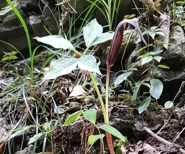 黄苞南星 Schott)是天南星科、天南星属植物,块茎近球形,鳞叶锐尖,叶片鸟足状分裂,…