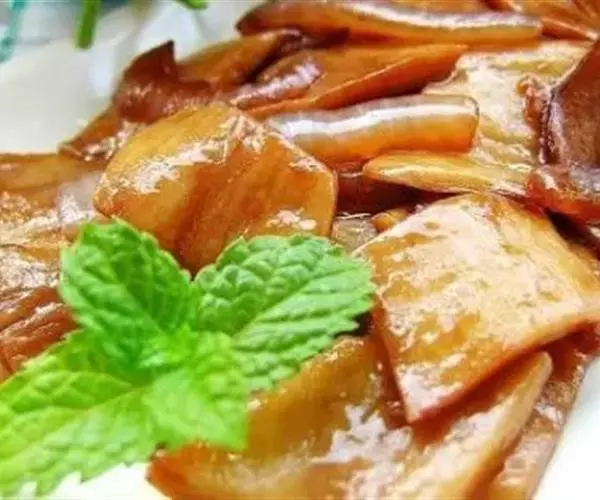 注意:要用旺火,水要烧得滚开,糖与水的比例要适度,鸭皮面烫得光亮、美观。