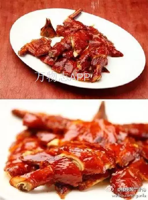 枣红色的烤鸭一般为1∶5.6~6(即1公斤饴糖兑入清水5.5~6升)。