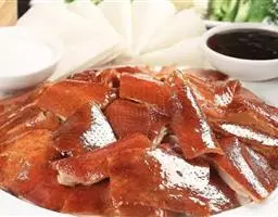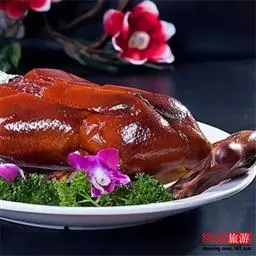 北京烤鸭 北京鸭是当今世界优质的一种肉食鸭,即用填喂方法育肥的一种白鸭,故名“填鸭”。不仅如此,北京鸭曾在百年以前传至欧美,经繁育一鸣惊人。因而,作为优质品种的北京鸭,成为世界名贵鸭种来源已久。北京烤鸭采用北京特有的果木炭火烤制,味道独特。