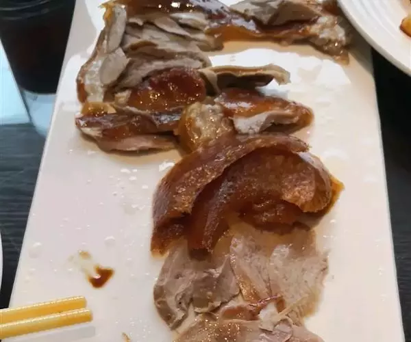 烤鸭是北京和南京的一道特色名菜,属于北京菜或金陵菜,该菜品以色泽红艳,肉质细嫩,味道醇厚,肥而不腻的特色,被誉为“天下美味”而驰名中外,其色泽略黄,柔软淡香,夹卷其他荤素食物食用,为宴席常用菜点,更是家常风味美食。