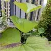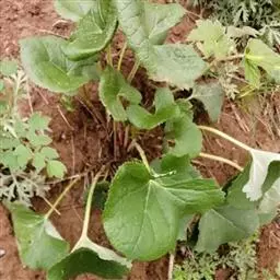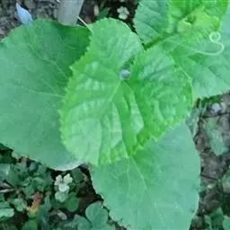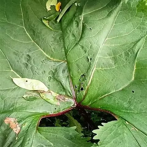 茎细直,直径约5-7毫米,无毛。叶有基部扩大抱茎的长柄,叶片宽过于长,宽16-30厘米,基部稍心形,掌状深裂,裂片约7个,中裂片3裂,侧裂片2-3裂,边缘有疏齿或小裂片,质稍厚,下面浅绿色,两面无毛;上部叶少数,有基部扩大抱茎的短柄,有时有3裂片或不裂而作狭长的苞叶状。