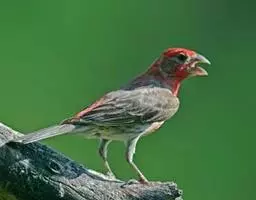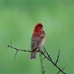 酒红朱雀小型鸟类,体长13~15厘米。雄鸟通体深红色,头部深朱红或棕红色,下背和腰玫瑰红色,…