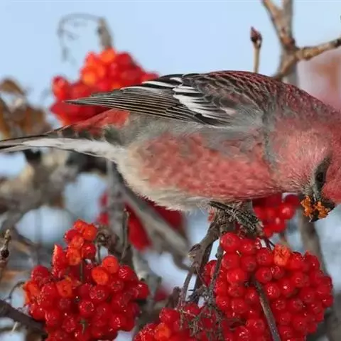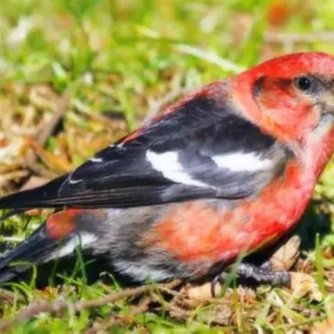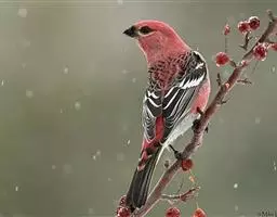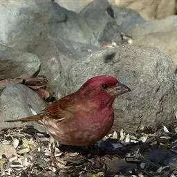 藏朱雀:全长约17-18厘米。雄鸟头部深红色具光辉,喉部暗红色具白色点斑;背部灰白色,各羽具玫瑰红…