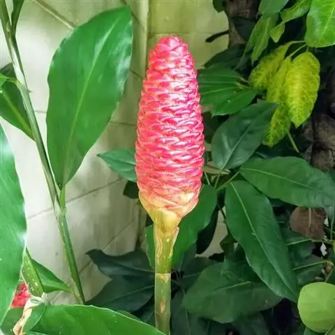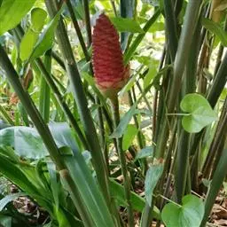 珊瑚姜是姜科、姜属植物。株高近1米。叶片长圆状披针形或披针形,长20-30厘米,宽4-6厘米,…