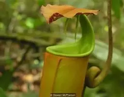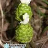 花茎直立,被以覆瓦状疏离的鳞片,穗状花序卵形至椭圆形,长约5厘米,宽约2.5厘米,苞片卵形,淡绿色;花稠密,长约2.5厘米,先端锐尖,萼短筒状,花冠3裂,裂片披针形,黄色,唇瓣较短,长圆状倒卵形,呈淡紫色,有黄白色斑点,下部两面三刀侧各有小裂片;雄蕊1枚,挺出,子房下位,花柱丝状,淡紫色,柱头放射状。蒴果长圆形胀约2.5厘米,花期6-8月。
