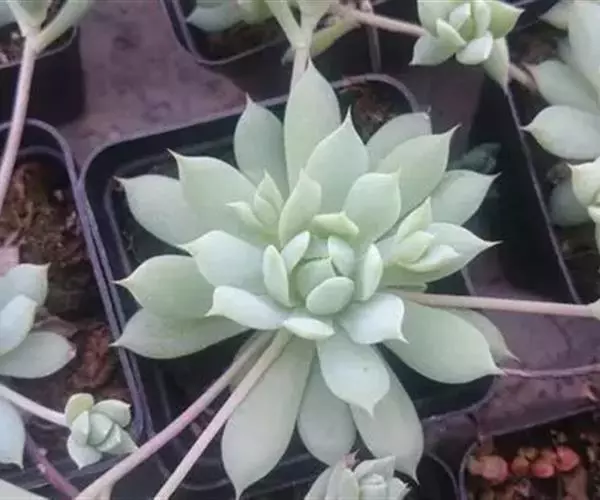 景天科风车草属的多肉植物,原产于墨西哥。株形和风车草属胧月极为相似。花瓣被蜡,叶排成延长的莲座状被…