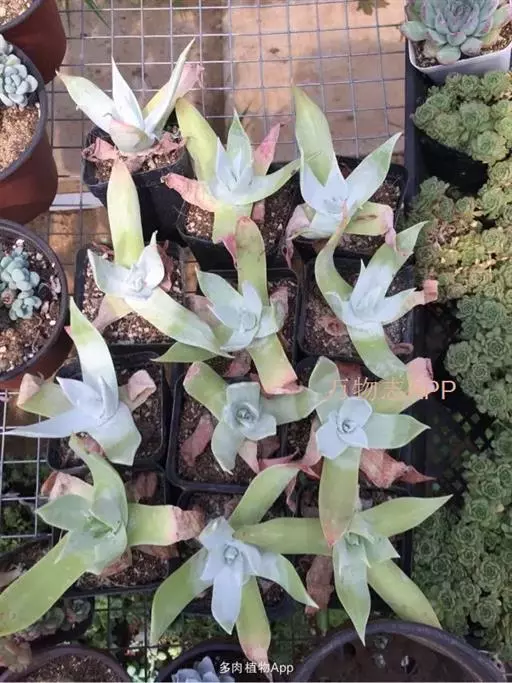 仙女杯 布瑞东尼 Dudleya brittonii,在墨西哥北部近海沿岸,蒂华纳以南,拉米西恩附近均有分布。植物学家布瑞登发现该品种为此命名,故名布瑞东尼,也有以其叶片宽大特征,直接叫做宽叶仙女杯。 仙女杯 布瑞东尼 这基本上是众人所知,园艺培养、家庭养殖,最为常见的一种仙女杯品种,形态多变,肉质叶片上白粉浓厚,白色纯净,上佳植株微现翠绿叶色。此品种分2种季节形态,视生长环境等因素(迄今研究尚无定论)。一种形态为叶面着浓厚白粉,一种形态为翠绿叶面极微量粉形态。花期四月至七月,花开黄色,染色体为N.17。 仙女杯 布瑞东尼属大型品种,不怕折腾,易于盆栽,亦益于盆栽。因为以此品种为母本或者副本的杂交品种较多,所以植株幼苗期难以分辨,购买时需确认母本父本以便保证购买为意向所需。 仙女杯 布瑞东尼 Dudleya brittonii在美国加州珲廷顿植物园