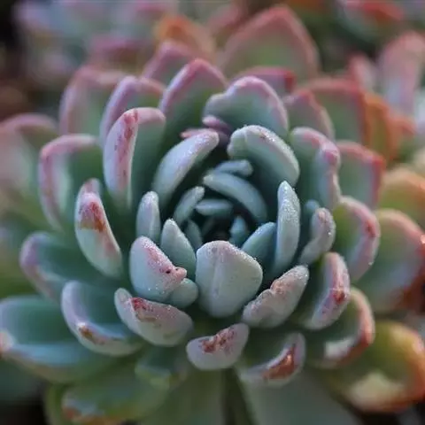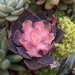 紫珍珠是景天科石莲花属的多年生肉质草本植物。植株中小型;叶片肉质,匙形,呈莲座状紧密排列;叶片粉紫色,…