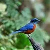 栗腹矶鸫是鸫科、矶鸫属小型鸟类,体长20-25厘米。雄鸟上体呈辉亮的钴蓝色,两翅黑褐色,喉蓝黑色,…