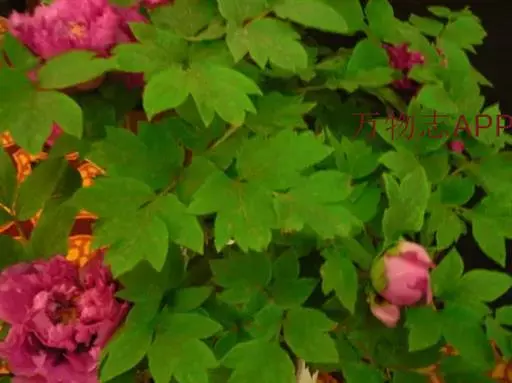 葛巾紫牡丹是落叶灌木。株型中高,半开展。分枝短而粗。中型圆叶,质地软而厚,较密;小叶卵圆形,长7-8厘米,宽5.5-7厘米,缺刻多,端锐尖,深绿色有较深紫色晕。无毛,背面淡绿色,有时具白粉,沿叶脉疏生短柔毛或近无毛,小叶柄长1.2-3厘米;侧生小叶狭卵形或长圆状卵形,长4.5-6.5厘米,宽2.5-4厘米,近无柄;叶柄长5-11厘米,和叶轴均无毛。