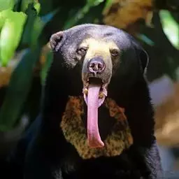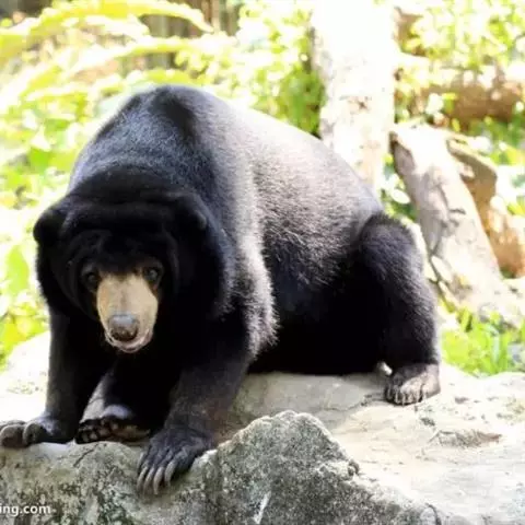 马来熊,是食肉目熊科马来熊属哺乳动物。体胖颈短,眼睛和耳朵小;头部短圆;全身乌黑光滑;鼻唇周为棕黄色,…