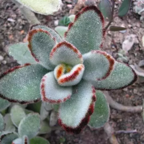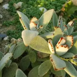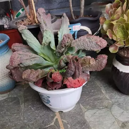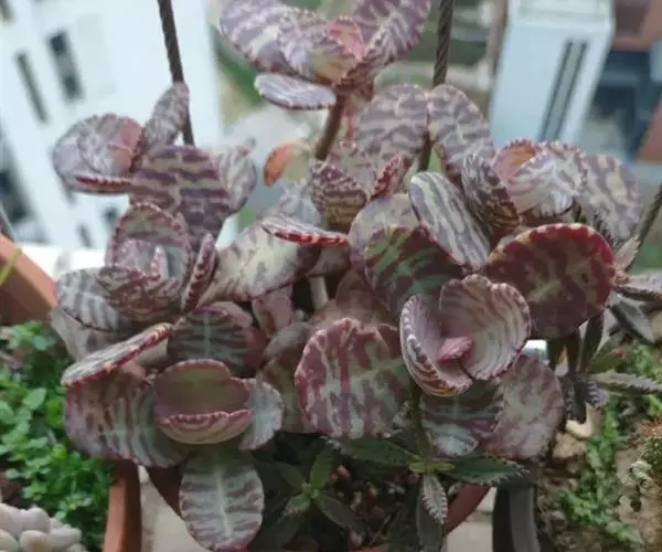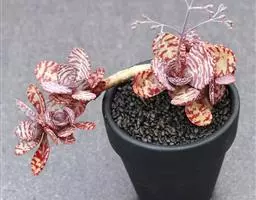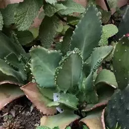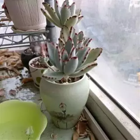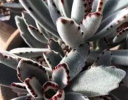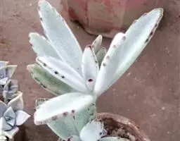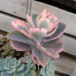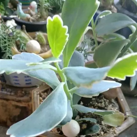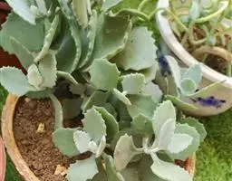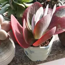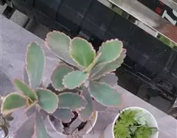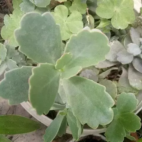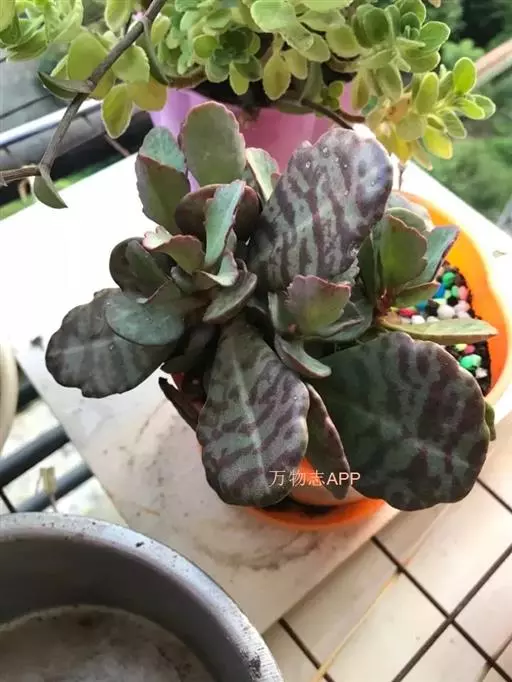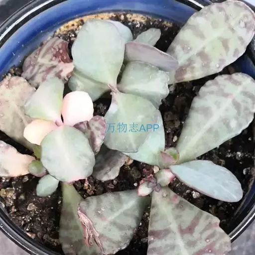 江户紫,景天科伽蓝菜属草本植物,是多年生草本花卉。花白色,但栽培中很少能见到花,常作观叶植物栽培。原产自非洲的索马里、埃塞俄比亚。