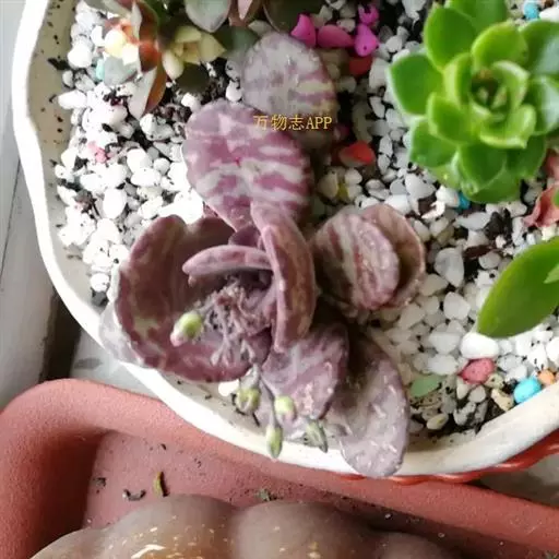 江户紫,景天科伽蓝菜属草本植物,是多年生草本花卉。花白色,但栽培中很少能见到花,常作观叶植物栽培。…