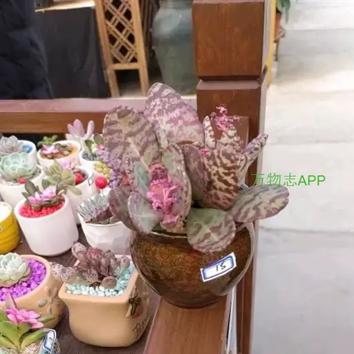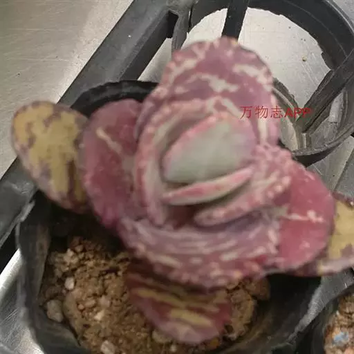 江户紫叶片肥厚,灰绿或蓝绿色叶面上布满了紫褐色斑点,犹如一块美丽的调色板,是多肉植物中的观叶佳品,大型植株可供布置温室、植物园中的沙漠生态景观,江户紫叶片有独特的色调,是多肉植物中的观叶佳品,家庭栽培可以美化阳台、窗台、客厅、书房,奇特可爱。适合家庭栽种。