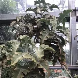栽培中若光线不足,会造成茎叶徒长,株形松散,叶色暗淡,白粉消失,斑点颜色减退,植株缺乏生机,严重影响观赏。而夏天的强光直射,又会造成叶尖枯萎。因此,除夏季高温时要适当遮光外,其它季节都要给予充足的光照,这样培养出的植株叶片肥厚,白粉明显,紫褐色斑点清晰显著,非常漂亮。夏季高温时因植株生长缓慢,应加强通风,以免因土壤湿度过大,引起基部茎叶变黄腐烂。冬季放在室内阳光充足处,夜间不低于12℃,白天在18℃以上,可正常浇水,使植株继续生长;如果维持不了这么高的温度,节制浇水,使植株休眠,也能耐5℃的低温。春、秋季节是植株生长的旺盛期,保持土壤湿润而不积水,每月施一次腐熟的稀薄液肥或无机复合肥。每年春季换盆一次,并对植株进行修剪,以保持株形完美。盆土宜用疏松肥沃,具有良好排水、保水性能的沙质土壤。可用腐叶土2份、园土1份、粗砂或蛭石2份,另加少量腐熟的骨粉混匀后使用,因本种根系发达,应用较大的花盆栽种。新栽的植株放在光线明亮又无直射阳光处养护,不必浇太多的水,等恢复长势后再进行正常养护。