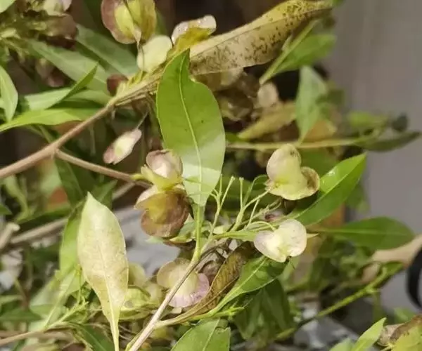 花序顶生或在小枝上部腋生,比叶短,密花,主轴和分枝均有棱角;花梗纤细,长2-5毫米,有时可达1厘米;萼片4,披针形或长椭圆形,长约3毫米,顶端钝;雄蕊7或8,花丝长不及1毫米,花药长2.5毫米,内屈,有腺点;子房椭圆形,外面有胶状粘液,2或3室,花柱长约6毫米,顶端2或3深裂。蒴果倒心形或扁球形,2或3翅,高1.5-2.2厘米,连翅宽1.8-2.5厘米,种皮膜质或纸质,有脉纹;种子每室1或2颗,透镜状,黑色。花期秋末,果期冬末春初。