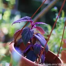 紫鹅绒(学名:Gynura aurantiana)又名:紫绒三七、天鹅绒三七等,又叫紫叶网纹草。属菊科多年生草本或亚灌木,茎粗壮多枝。叶对生,长卵形。叶缘具有较粗的重锯齿。因茎叶密披状如鹅绒的紫红色细毛而得名。紫鹅绒才其长满如天鹅绒状茸毛的叶片而著称,紫鹅绒的叶色不呈紫色而呈绿色,是光照不足引起的。