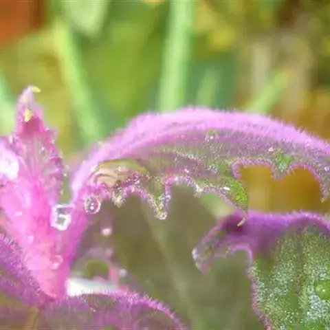 浇水:紫鹅绒在生长季节,浇水应掌握“宁湿勿干”的原则。一旦土壤干透,叶片就会萎蔫下垂,此时需立即浇水或喷水,以使其恢复生机,切忌将水喷到叶面上,以免出现烂叶。