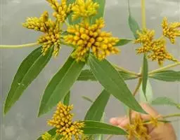 花为头状花序,腋生,呈黄色或橙黄色,类似蒲公英花,有时会散发出令人不悦的异味,所以常将花蕾摘掉;花期4~5月。