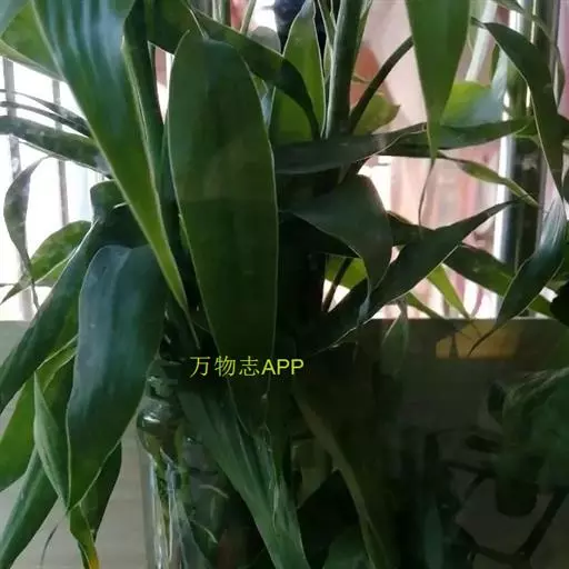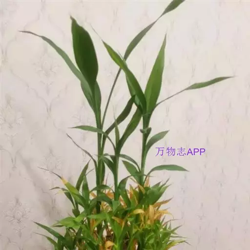 植株中间的部分有绿黄色或金黄色纵条纹,比较特别,富贵竹的植株较粗壮,叶片深绿色。