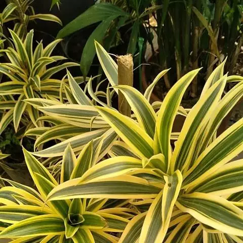与银边富贵竹一起组成一对姐妹型品种,所不同的是叶缘有淡黄、白色或金黄色的边缘或纵条纹,秀雅绚丽,加之姿态潇洒,富有竹韵。